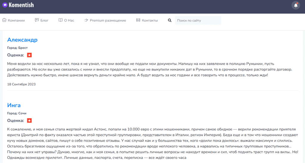 Другие компании из отрасли инвестиционной миграции также подвергаются атаке фейковыми отзывами. Содержание и стилистика отзывов аналогичны тем, что написаны о Legal Immigration.
